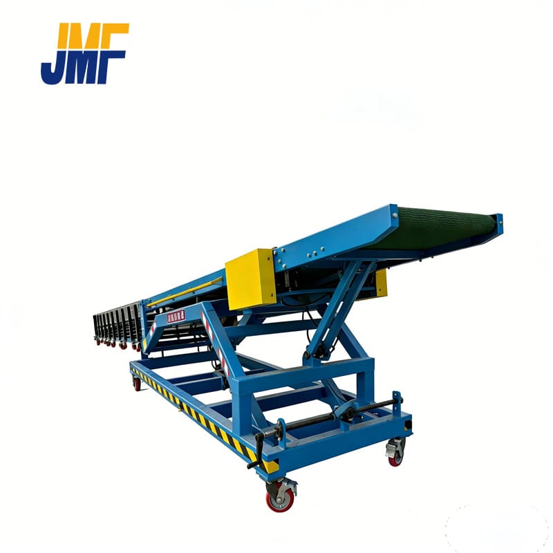The mobile loading and unloading belt conveyor does not require a loading and unloading platform and can perform loading and unloading operations on flat ground.